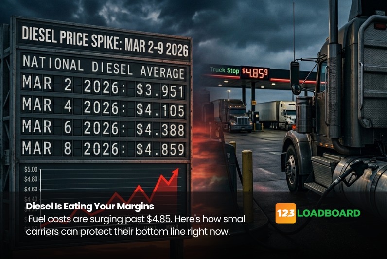 For small carriers and owner-operators, this isn’t just a line-item increase on a spreadsheet. Fuel already accounts for somewhere between 20 and 30 percent of operating costs per mile for most trucking operations, and for independent operators or fleets running one to five trucks, an 85 to 96 cent-per-gallon weekly spike can flip a profitable run into a break-even situation or worse.